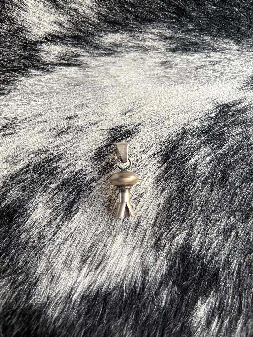Measures 1 1/4" in total length. Fits up to 4mm pearls. Stamped by Native artist.