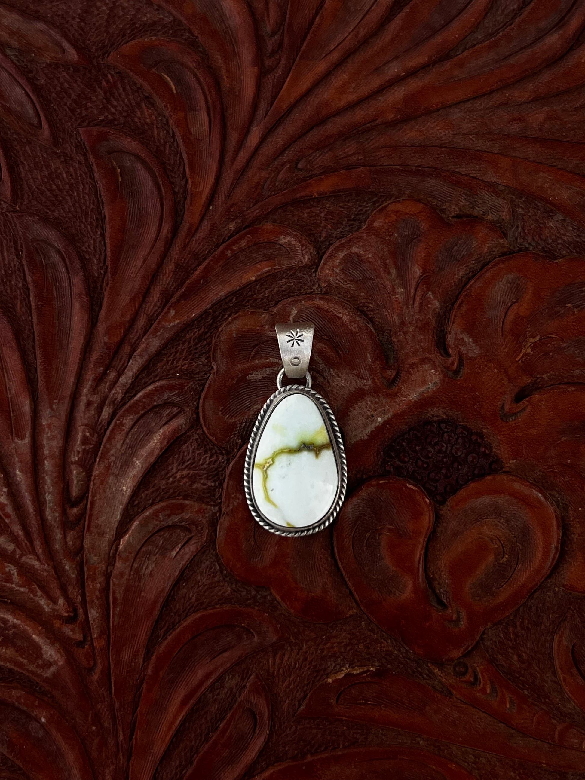 This elegant sterling silver pendant showcases a natural Palomino turquoise stone in a classic teardrop setting. The stone brings a subtle pop of color and earthy charm to any look. Will fit up to a 6mm pearl. Measures 1 1/2” long from top of bail to bottom. Stamped BkF .925!